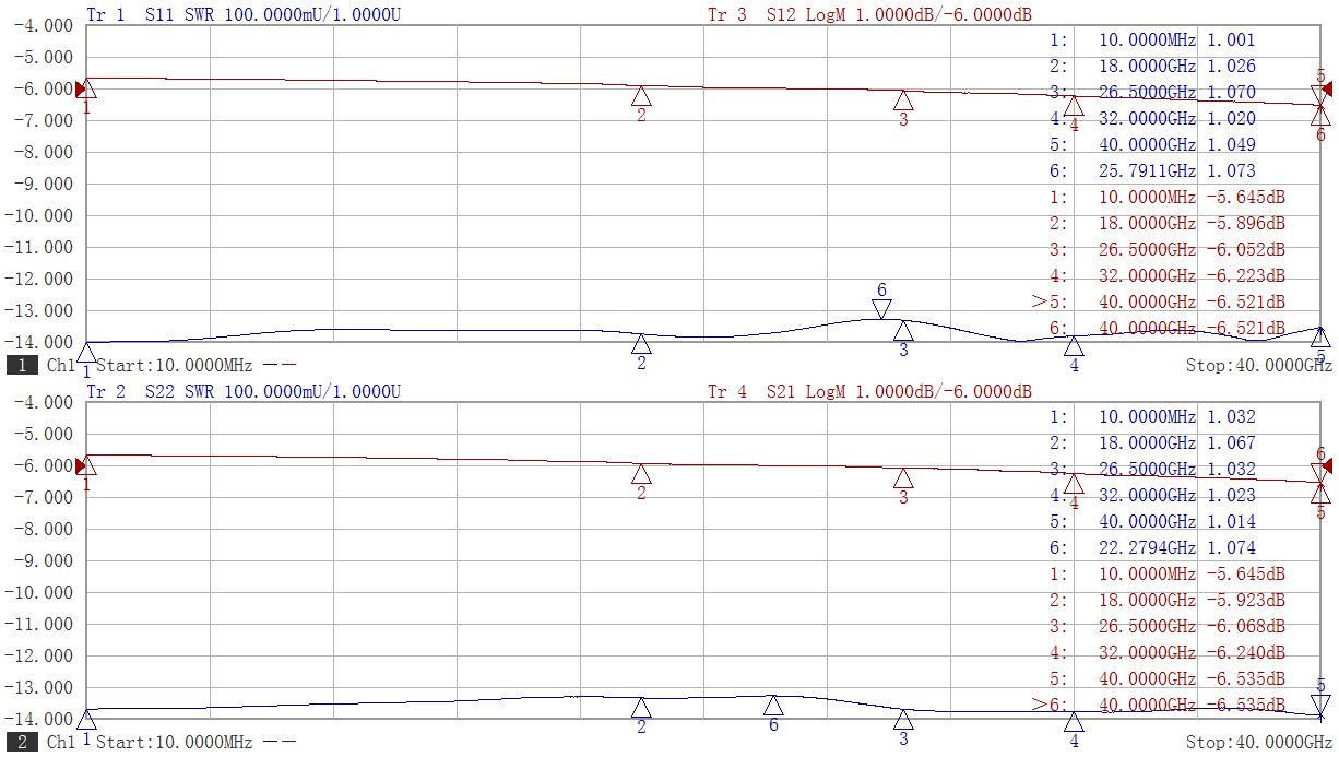 RFTOP 2.92mm,DC-40GHz,2W,6dB,衰减器典型测试曲线