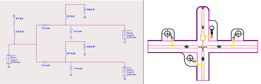 开关就是利用了PIN管在正反加电时对微波信号呈现的不同阻抗来实现的,设计开关实际上变成了对反向时的电容和正向时的电阻的宽带匹配问题。